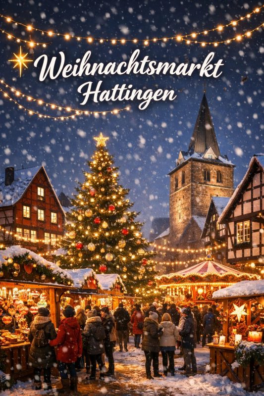 Erleben Sie die festliche Adventszeit auf dem stimmungsvollen Weihnachtsmarkt in der historischen Altstadt von Hattingen! Fachwerkromantik, liebevoll geschmückte Buden und der Duft von Glühwein und gebrannten Mandeln sorgen für eine zauberhafte Atmosphäre.